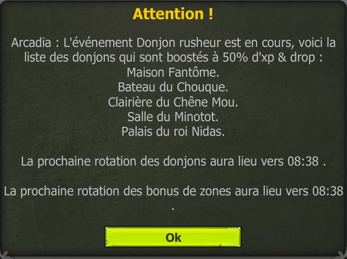 Allez on est gentil, désormais TOUT les dimanche de 16h à 22h, les zones et les donjons seront à 100% !